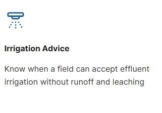 Nouyue Waste Recycling Irrigation System tracks the soil moisture status of the field and the effluent pond level status in comparison to the full point (optional and customizable). Based on that data, Nouyue Insights gives quantified effluent irrigation advice – whether it is safe to irrigate, and if so, how much (in mm). In addition, the capability performs a 14 day review of Good Management Practices when used with an optional pump activity sensor.