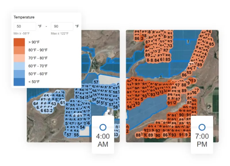 Granular, near real-time insights: Track temperature and humidity at a per-acre level with updates every 10 minutes.